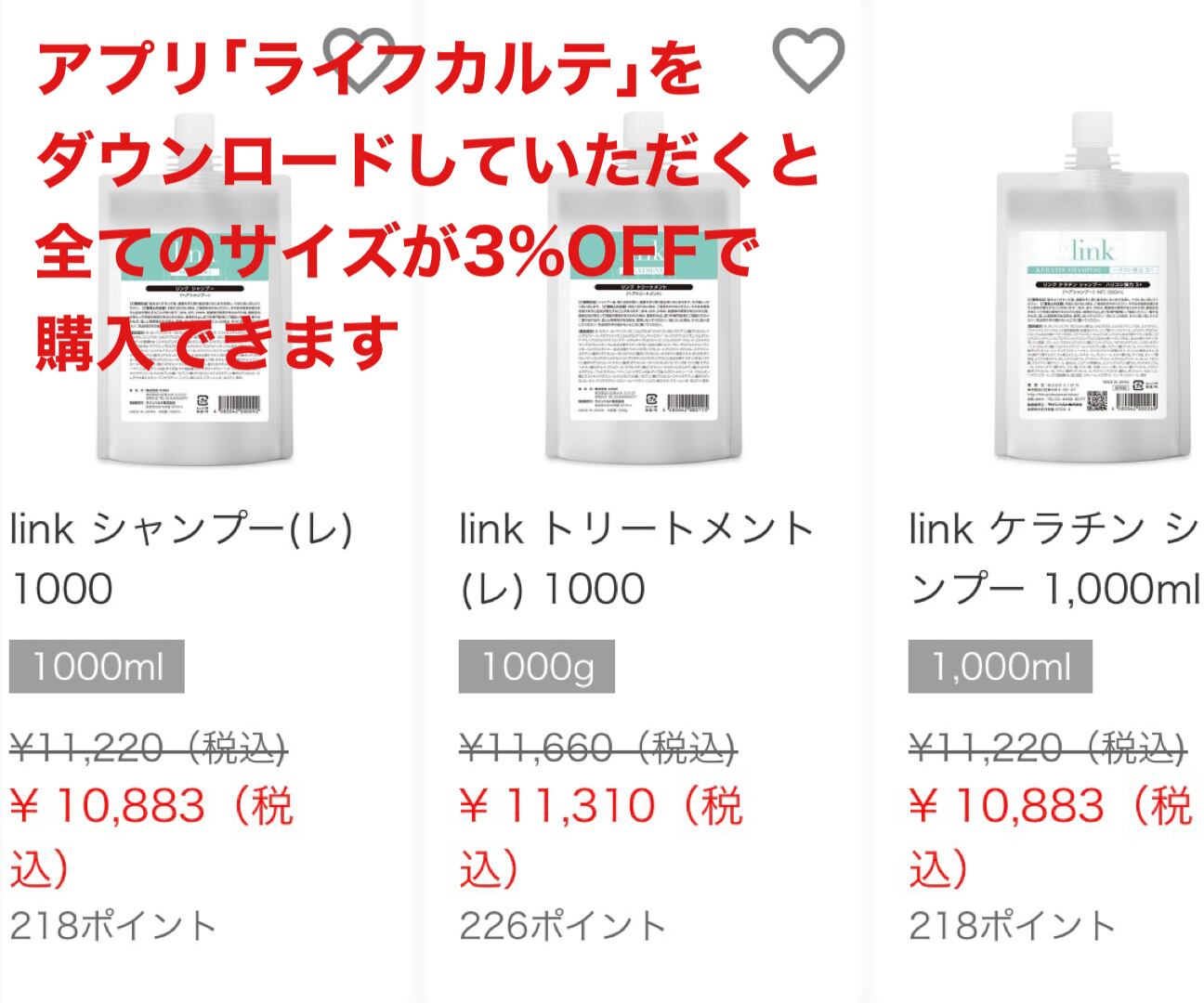 500mlや1000mlサイズがご希望の場合は、スマートフォンにアプリ「ライフカルテ」をダウンロードして購入していただいております。